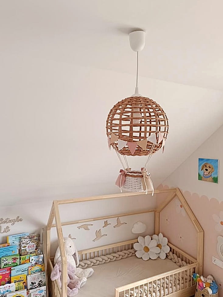 Stanie się piękną dekoracją pokoju każdego maluszka. Dzieki ażurowemu splotowi lampa w wieczornym oświetleniu nadaje wnętrzu niepowtarzalny i wyjątkowy klimat.