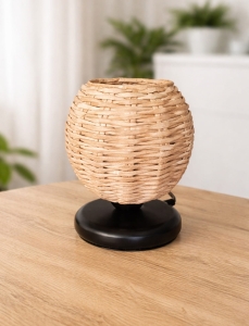Efektowny lampka nocna wykonana z wikliny papierowej. Doskonale sprawdzi się, jako uzupełnienie głównego oświetlenia dające ciepłe klimatyczne światło. Dekoracja wykonana ręcznie z ogromną dbałością o każdy szczegół, co gwarantuje jej oryginalność i niepowtarzalny charakter.