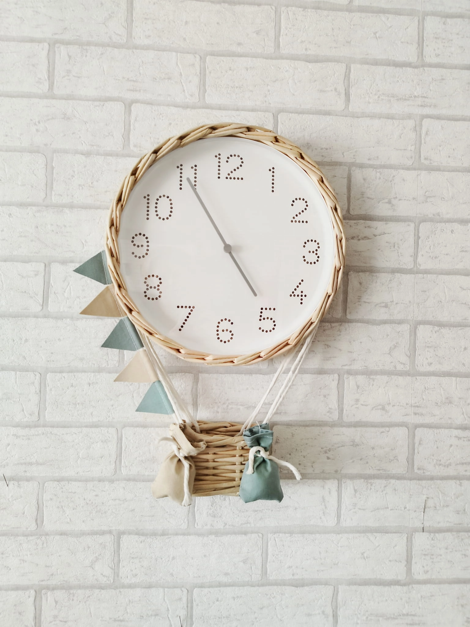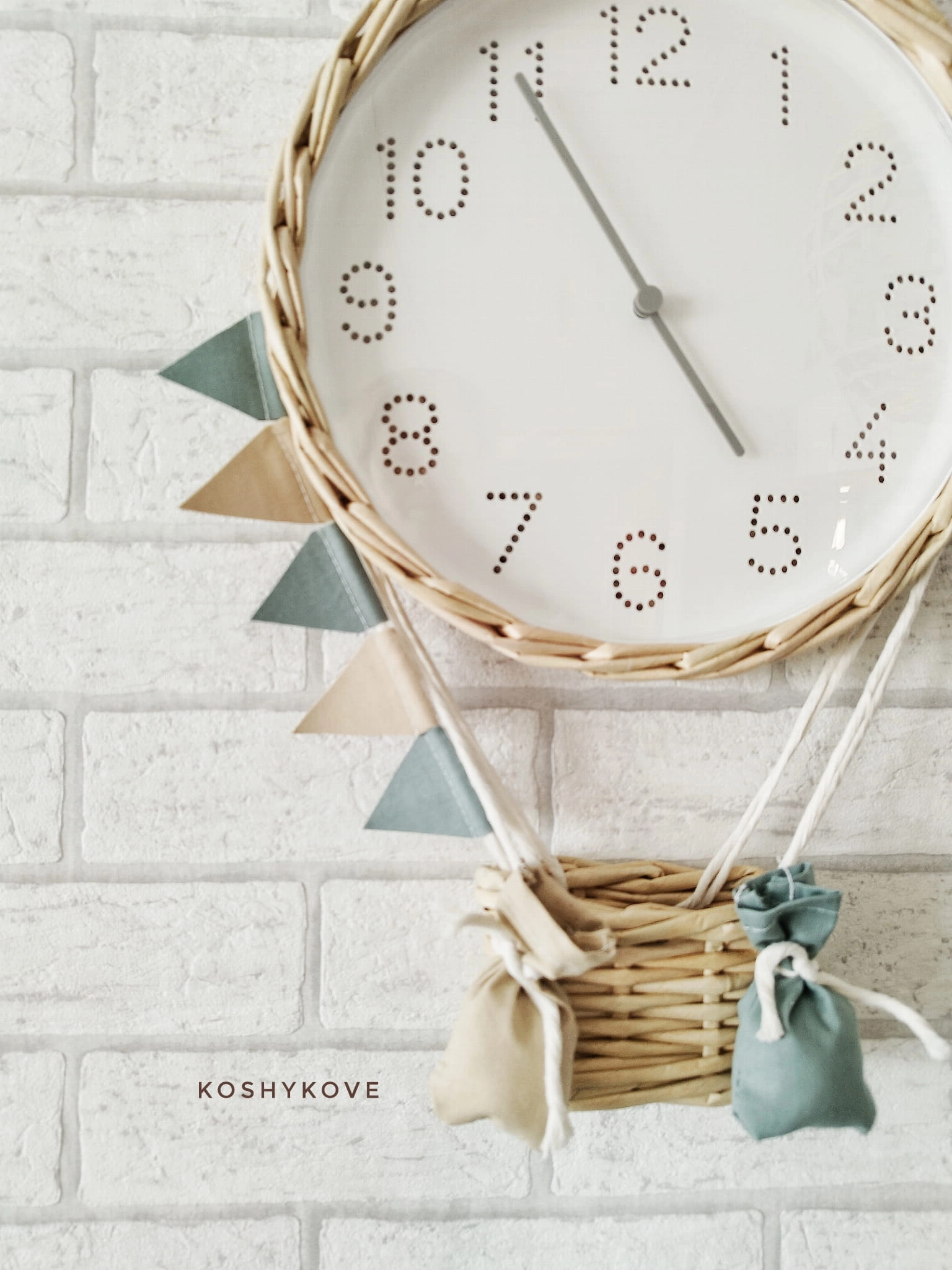 Zegar wykonany na bazie zegara Tromma (Ikea) opleciony ręcznie wikliną papierową, zabezpieczoną lakierem akrylowym.