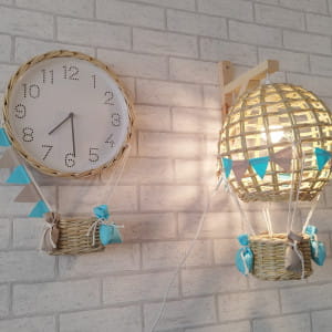 Zegar ścienny dziecięcy balon beż/turkus,len
