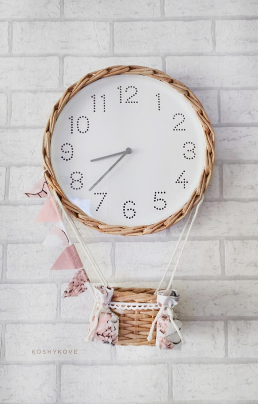 Zegar ścienny dziecięcy balon natur pudr.kwiaty+koronka