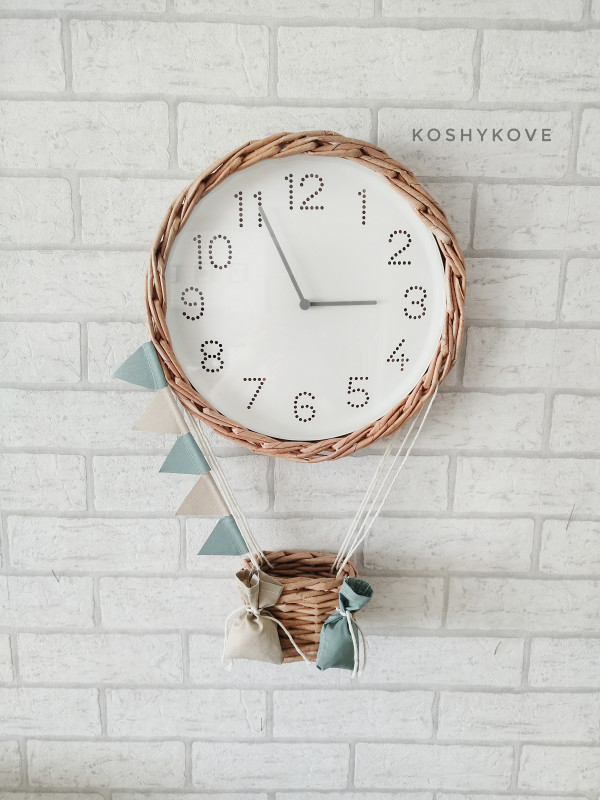 Zegar wykonany na bazie zegara Tromma (Ikea) opleciony ręcznie wikliną papierową, zabezpieczoną lakierem akrylowym.